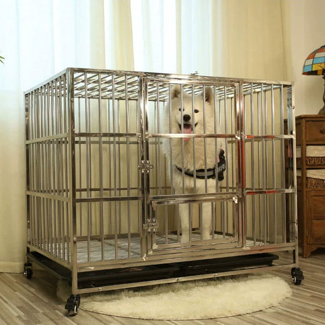 Kandang Anjing Besi Anti Karat Tebal untuk Anjing Sedang Besar Bisa Dilipat dengan Roda Praktis