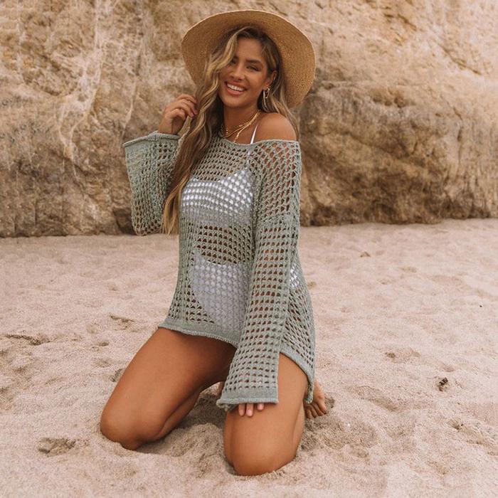 VERA BIKINI OUTER MINI DRESS CROCHET KNIT LASERCUT OUTER T0P BEACHWEAR - HITAM