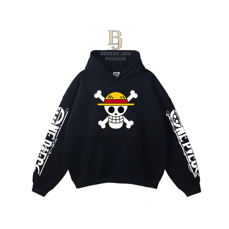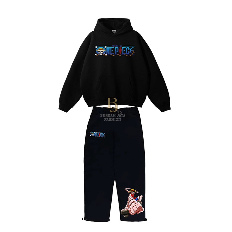 Setelan Anak Celana Skena & Hoodie Boxy Anak Laki-laki Perempuan Usia 2-13 Tahun Gambar Onepiece Topi Jerami Bajak Laut
