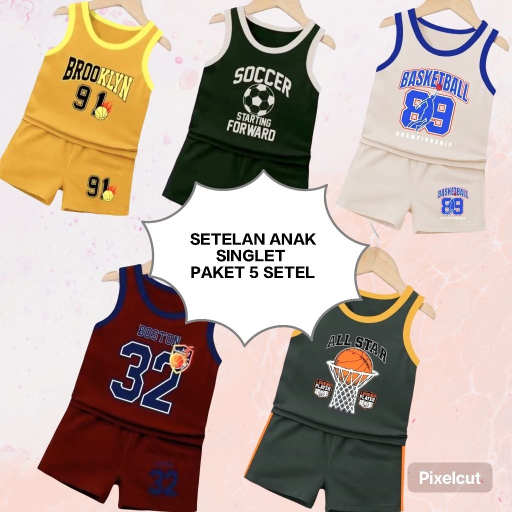 Paket 5 Setel 100rb setelan anak cowok/laki-laki | kaos anak cowok/singlet anak Laki-laki/setelan anak singlet cowok/cew