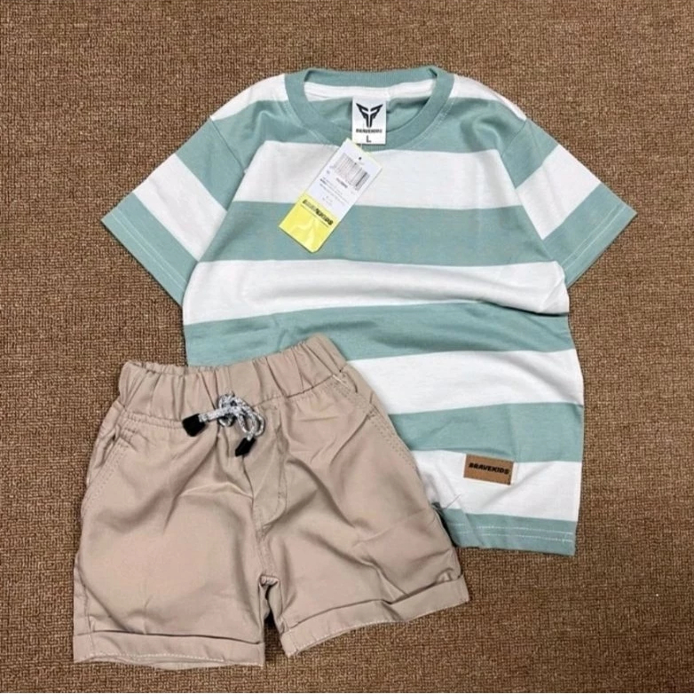 Setelan Baju Anak Laki - Laki Salur Besar Usia 1 - 6 Tahun