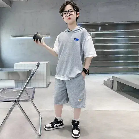 Setelan Casual Anak Laki Laki Usia 3-9 Tahun Korean Style Terbaru Hoodie Setcel Waffle Uniqlo