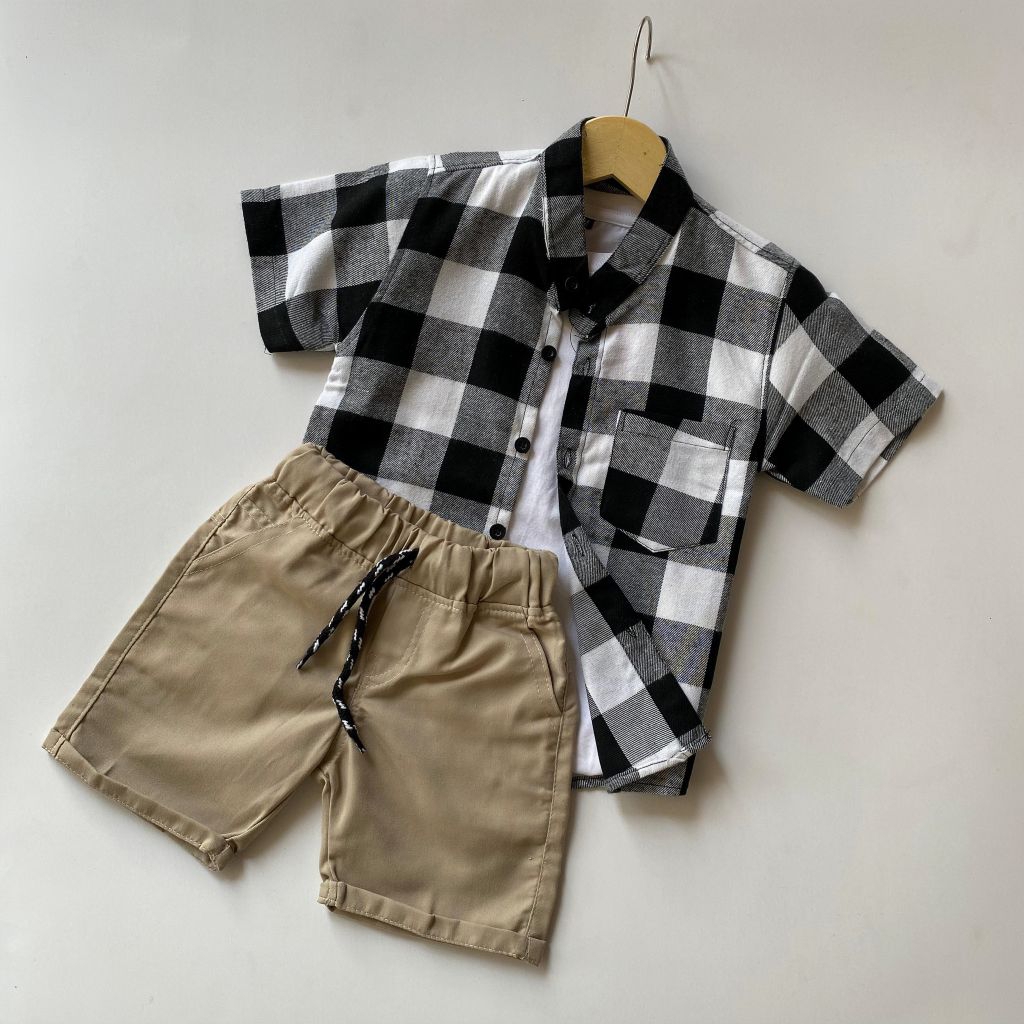 Setelan anak laki laki kemeja flanel celana broadshort twill union usia 1 - 5 tahun