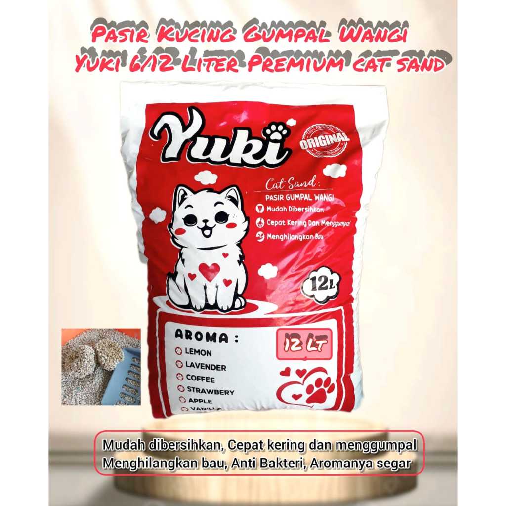 PASIR KUCING GUMPAL WANGI SUDAH DI PROSES DRIYER ANTI BAKTERI MINIM DEBU YUKI CAT SAND 12 LITER