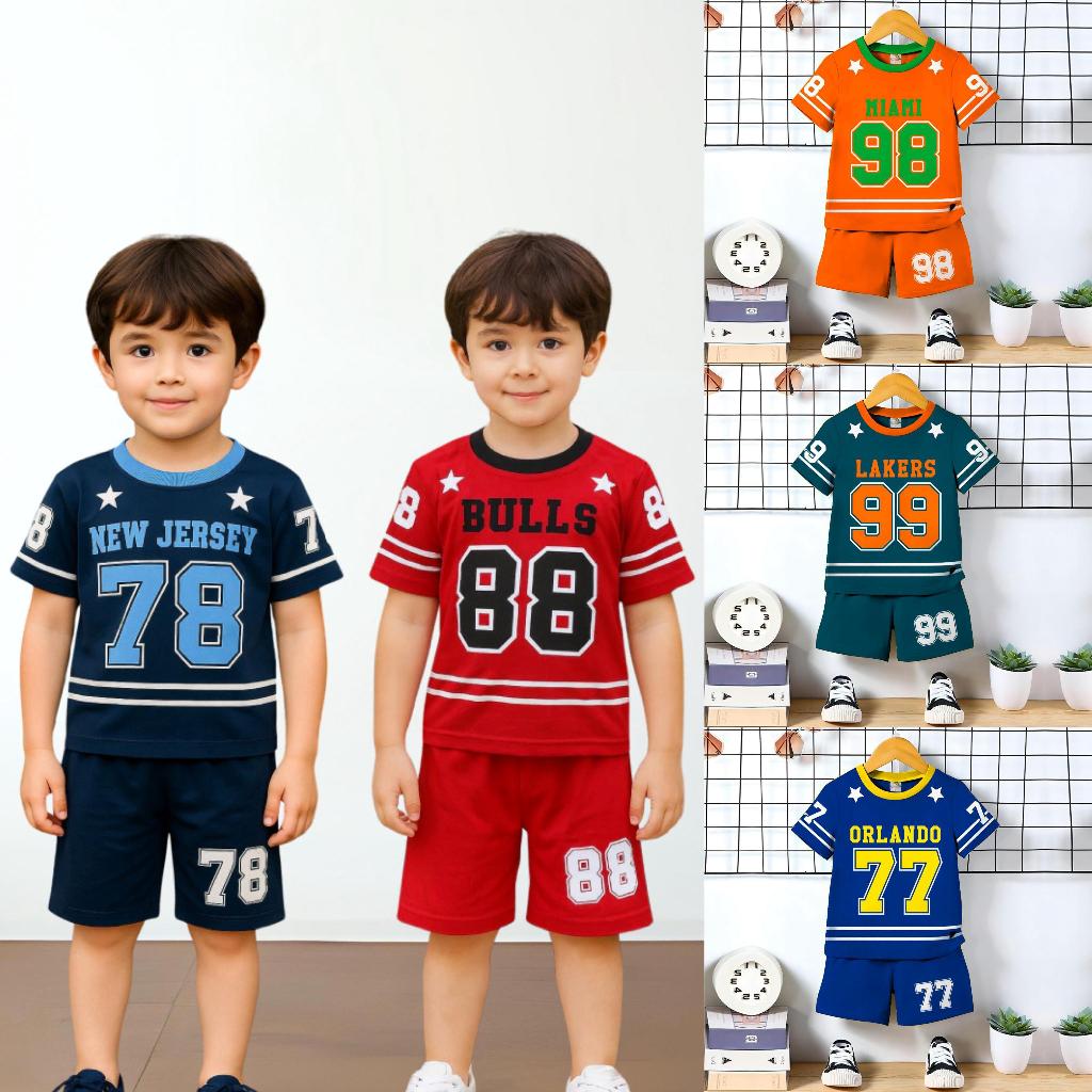 KIYOSAKI KIDS - Setelan Murah Anak Laki - Laki Celana Pendek Motif Angka Usia 1-11 tahun - Setelan Murah Baju Anak Cowok