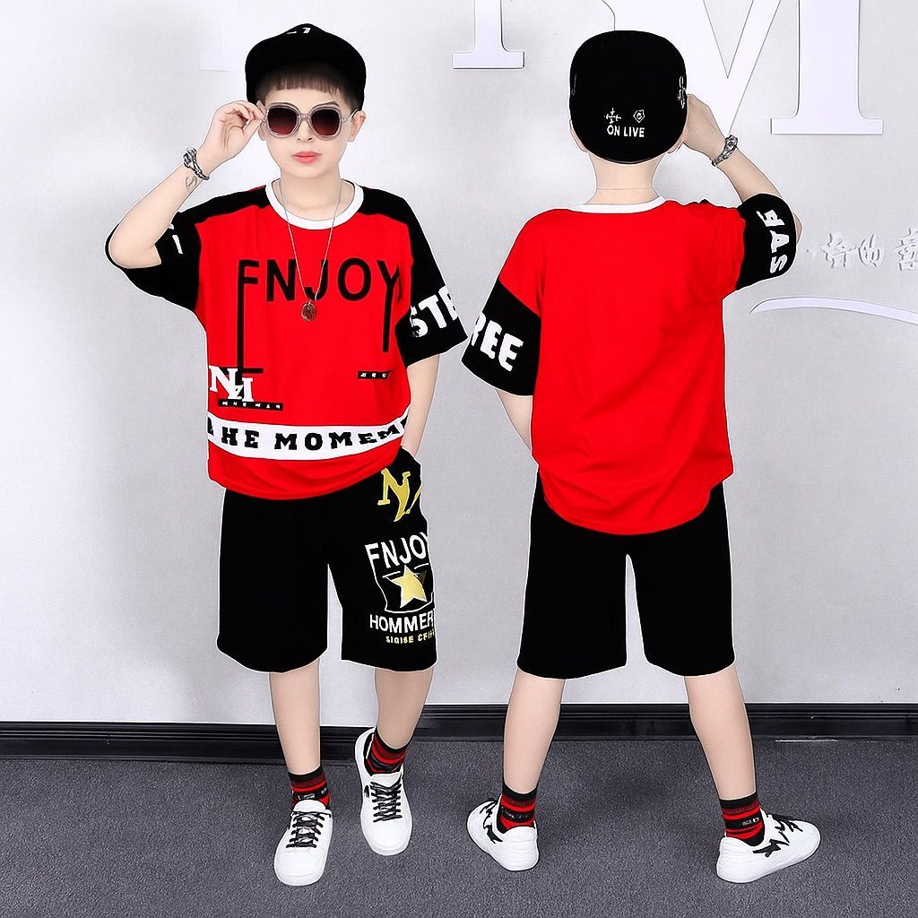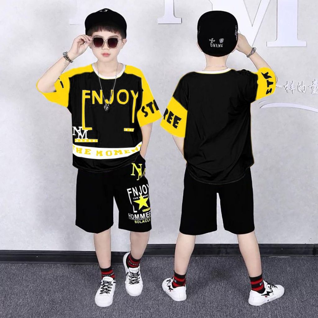 setelan pakaian baju kaos anak laki laki enjoy set pendek lengan pendek fashion terbaru size M L XL