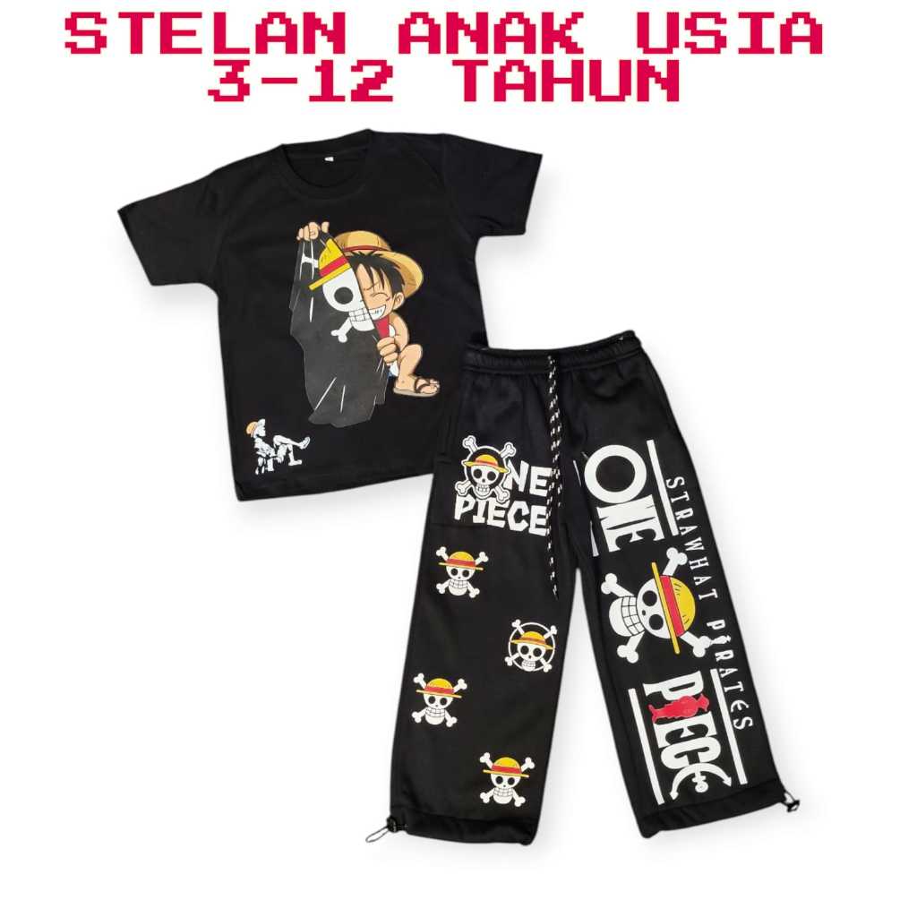 Stelan Anak Skena One Set Motif One Piece Unisek Anak laki-laki dan perempuan usia 3-12 tahun Fleece 240 Gsm