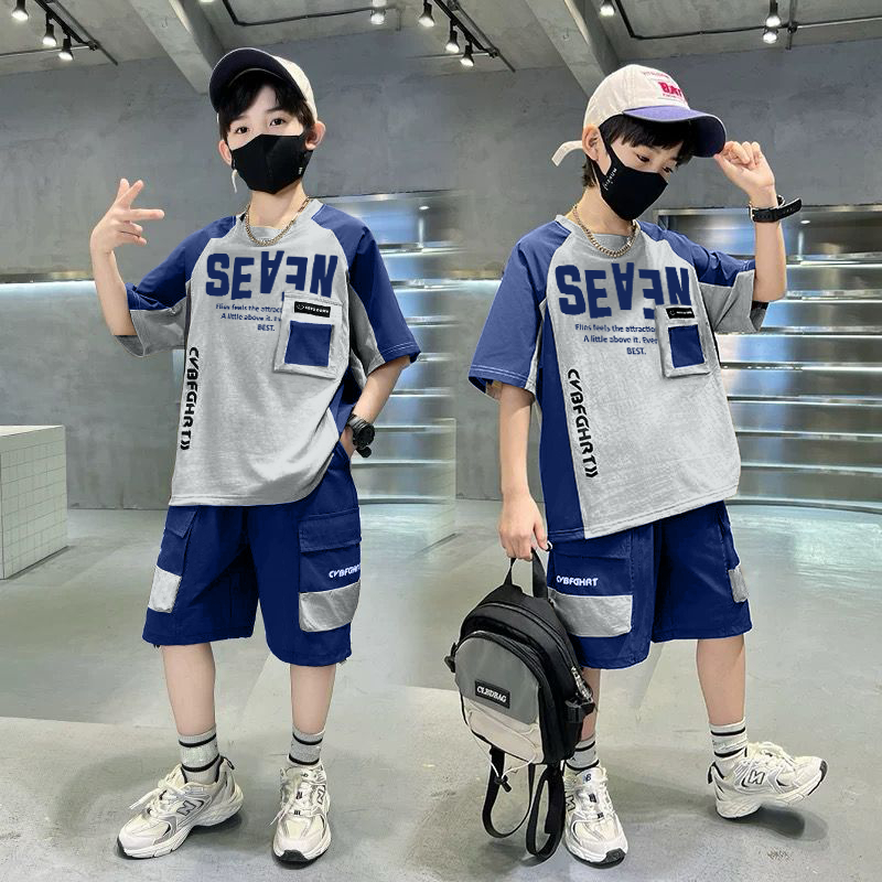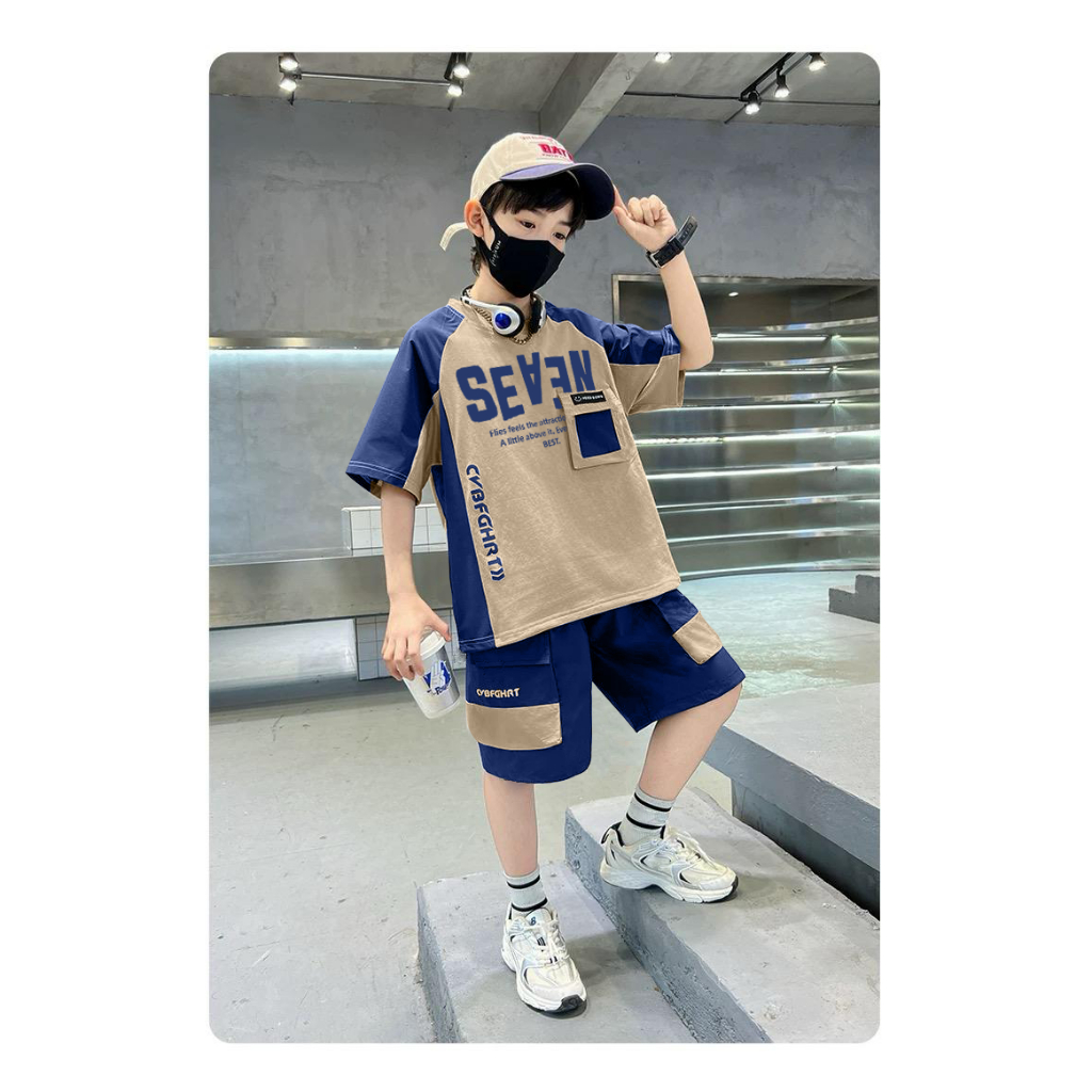 Amspro - Setelan Anak Laki-laki Set Steven Kaos Celana Pendek Kasual Trendy Fashion Kids Terbaru