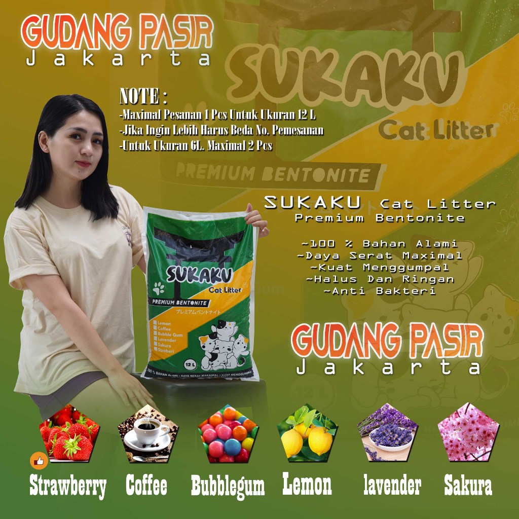 PASIR GUMPAL WANGI KUCING SUKAKU-PASIR KUCING 12 LITER