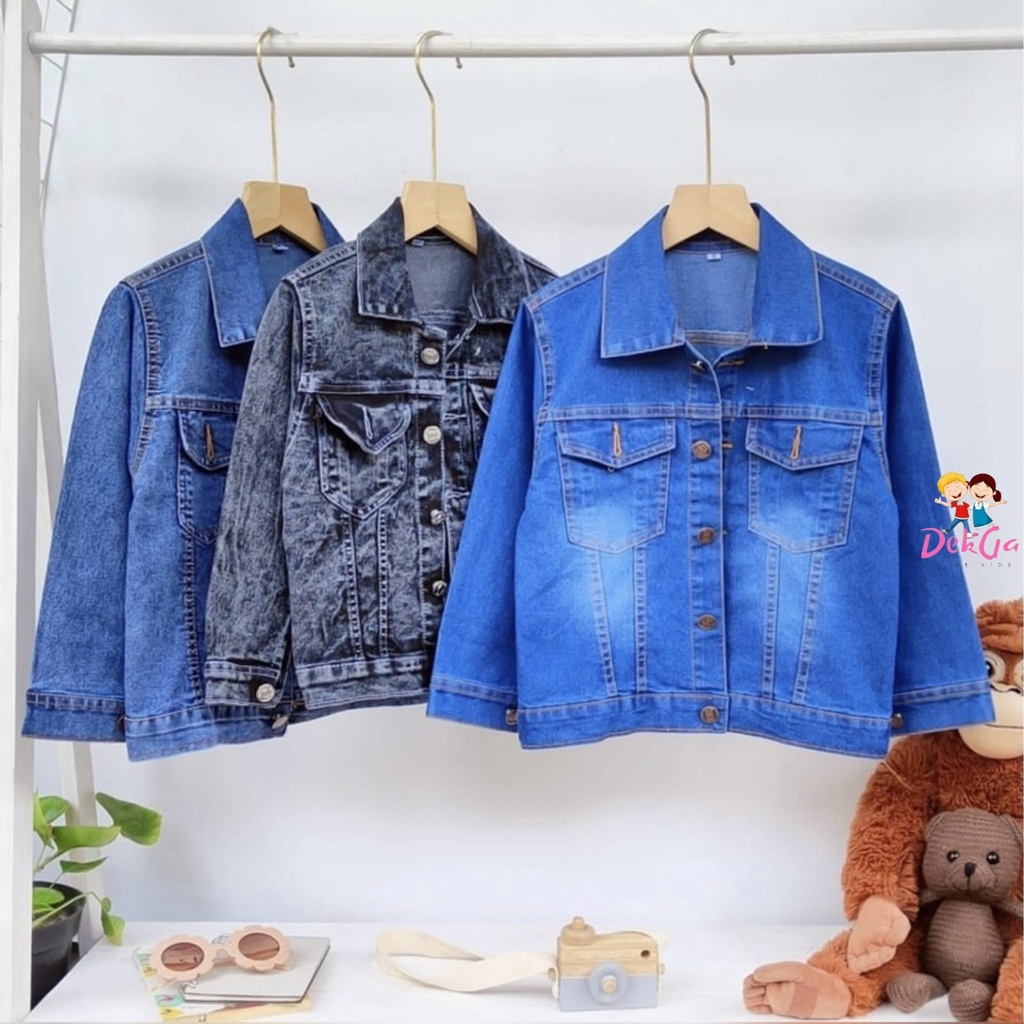 Jaket jeans anak unisex usia 2tahun sampai anak tanggung jaket polos denim premium