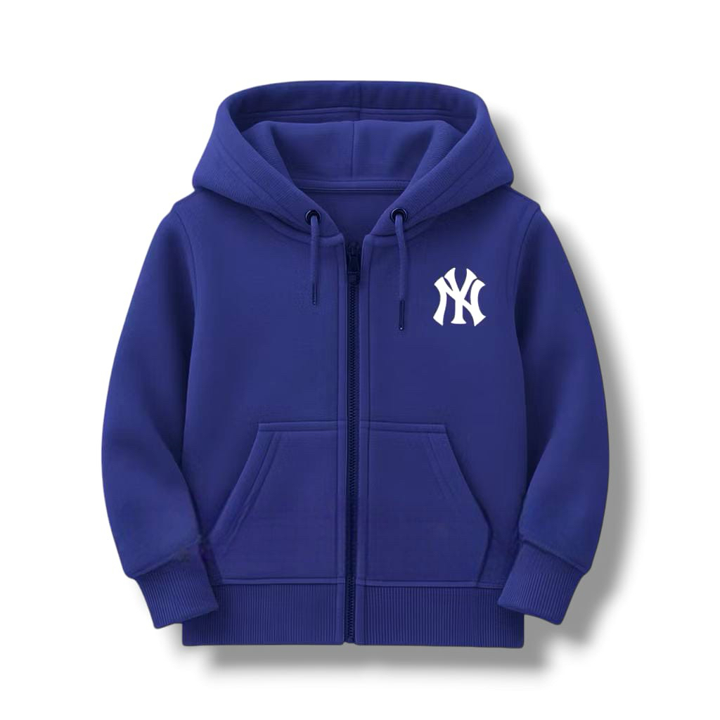 Jaket Hoodie Zipper Anak Laki-Laki Perempuan Usia 2-12 Tahun Sablon NY Bahan Fleece Tebal