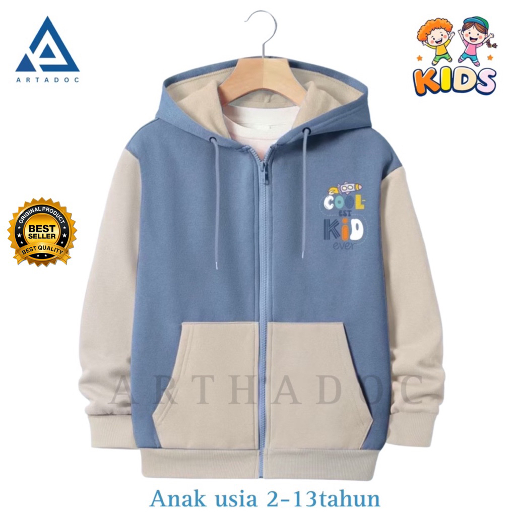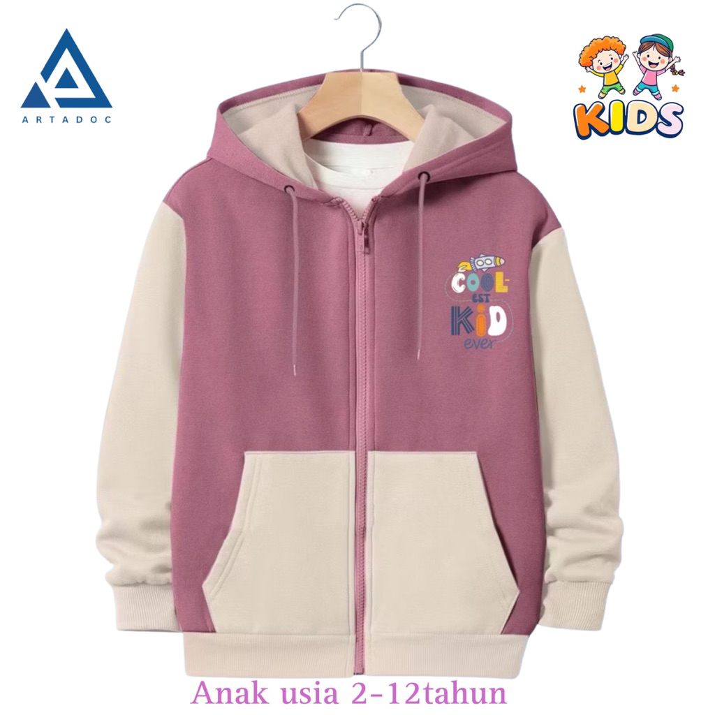 JAKET ANAK KEREN Jaket Zipper Kombinasi Anak Laki-laki Perempuan Usia 2-12Tahun Sablon COOLKIDS Bahan Fleece Premium by