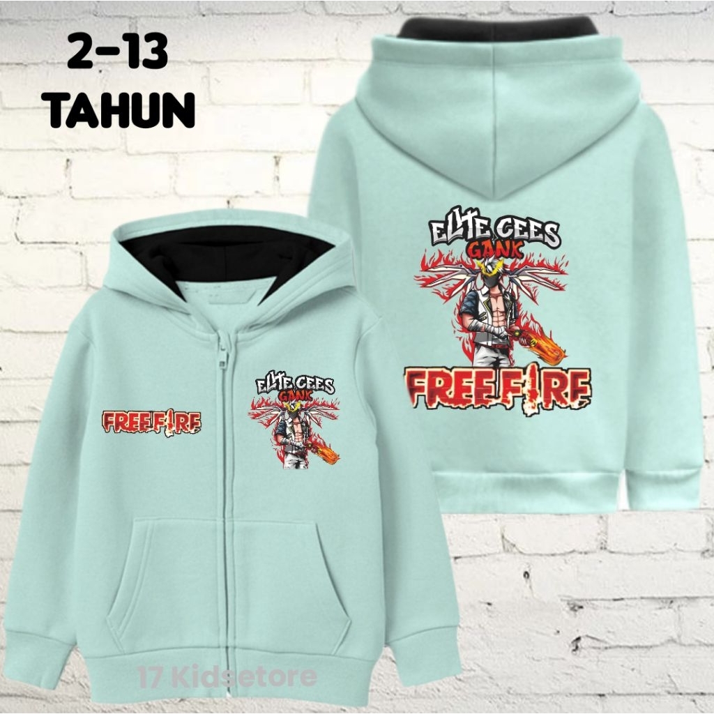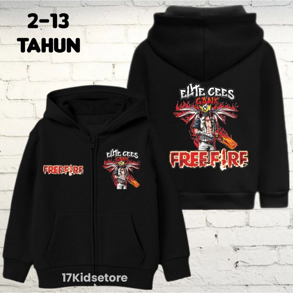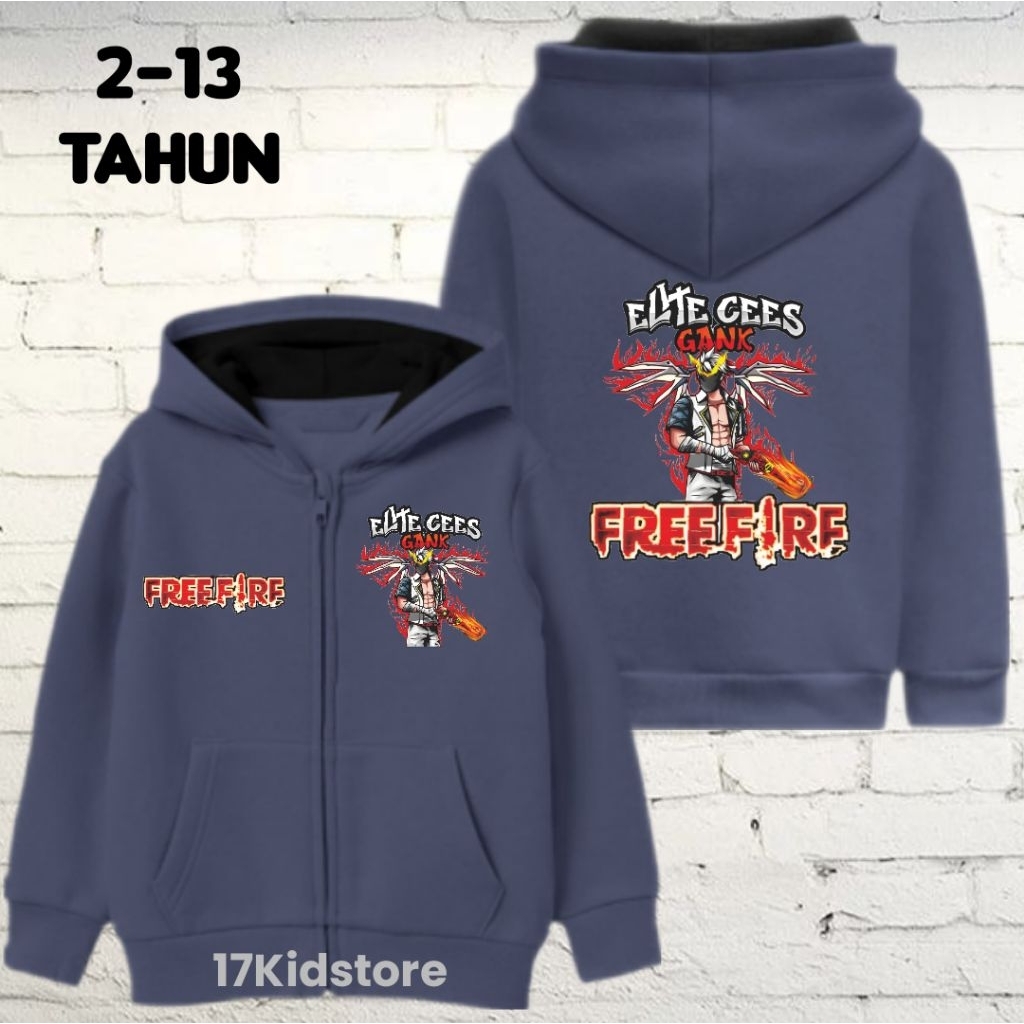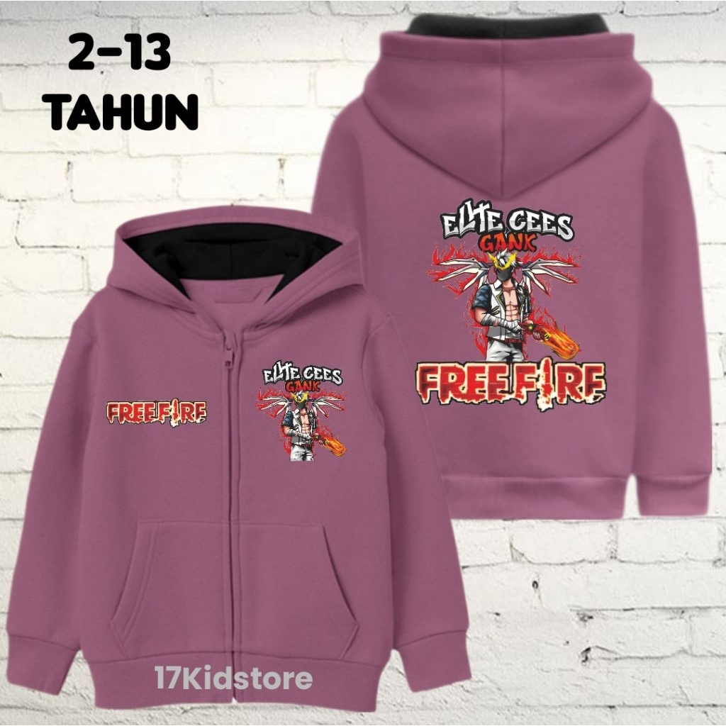 Jaket Resleting Anak FREE FIRE Dari Usia 2-3-4-5-6-7-8-9-10-11-12-13 Tahun/ Jaket Hoodie Zipper Anak Cowok cewe Yang Te