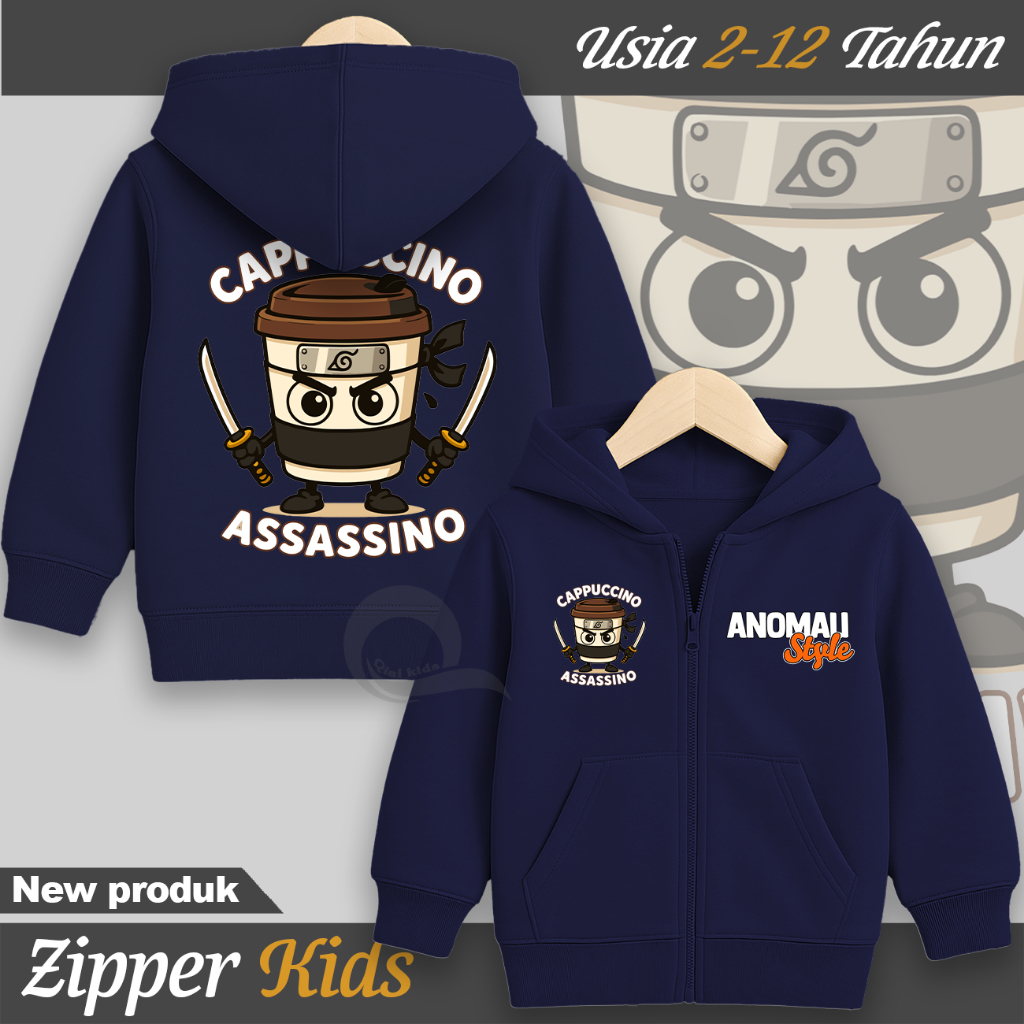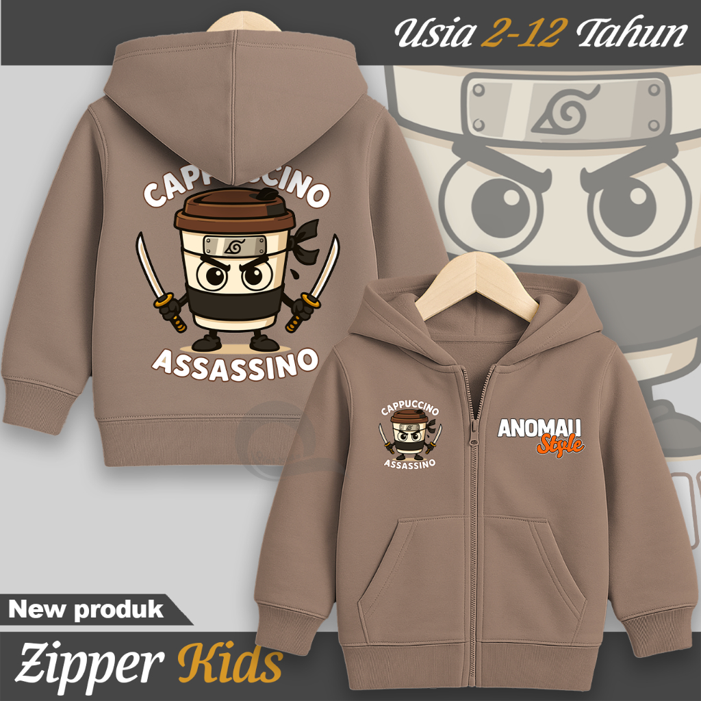 JAKET ZIPPER ANAK LAKI LAKI PEREMPUAN KARAKTER CAPPUCINNO ASSASINO USIA 2-13 TAHUN JACKET UNISEX