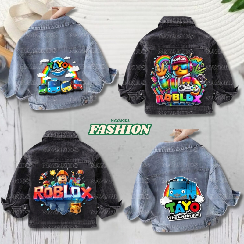 Jaket Jeans Anak Karakter Tayo / Polos Usia 1-7 Tahun Snow Blue Dan Snow Black