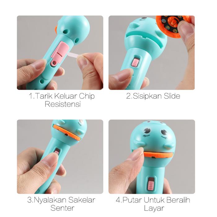 Mainan Anak Senter Proyektor / Fun Flashlight / Mainan Proyektor Gambar / Mainan Edukasi - Pink
