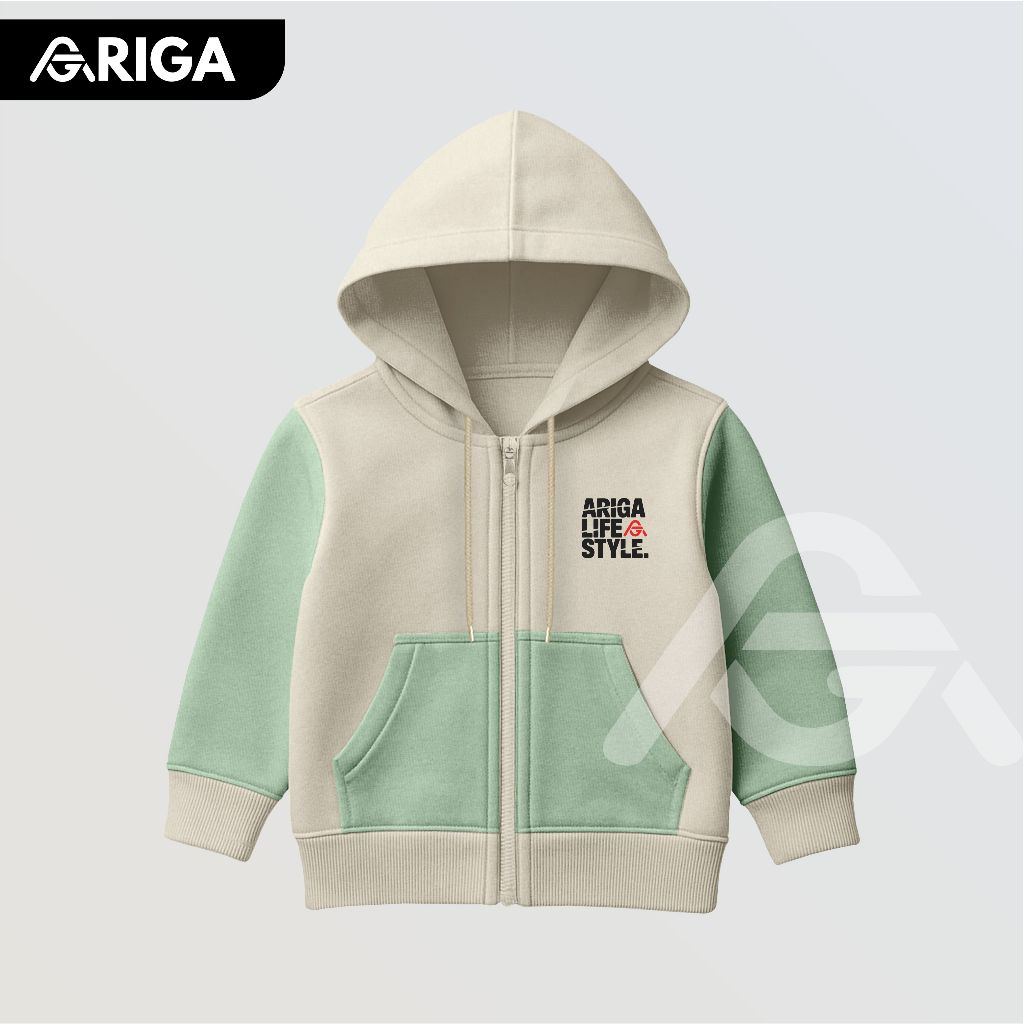 ARIGA - Jaket Zipper Anak Combi Sablon Ariga Life Style Usia 3-13 Tahun Bahan Fleece Tebal