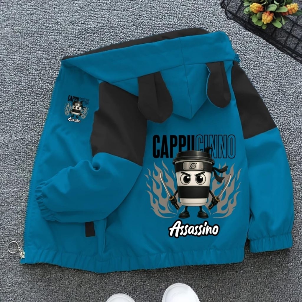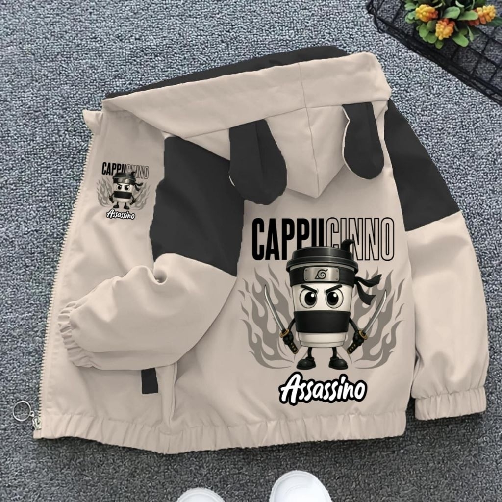 JAKET ANAK LAKI,, JAKET HODIE KOMBINASI, JAKET BERGAMBAR CAPPUCINO ASSASINO