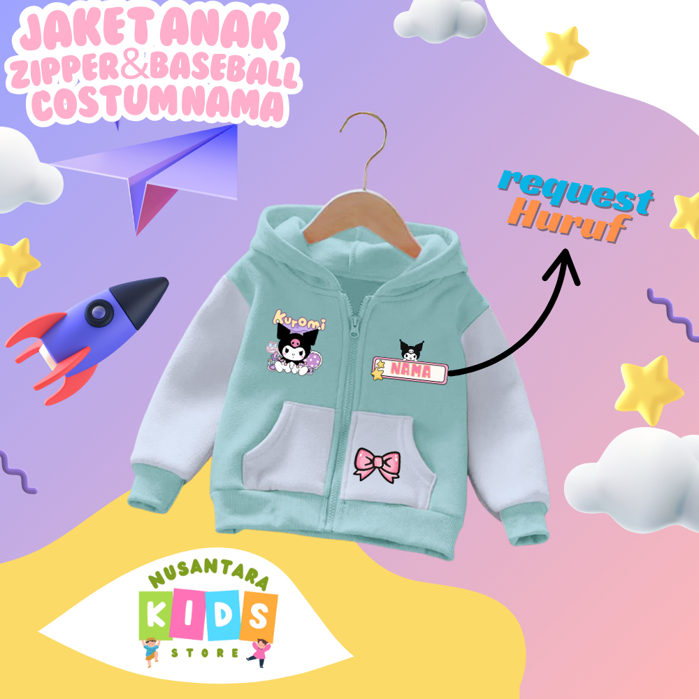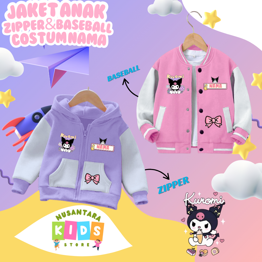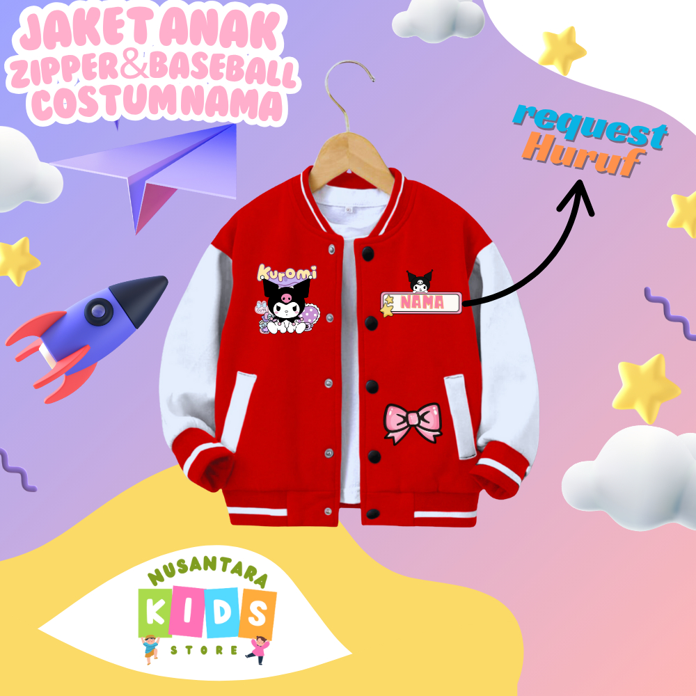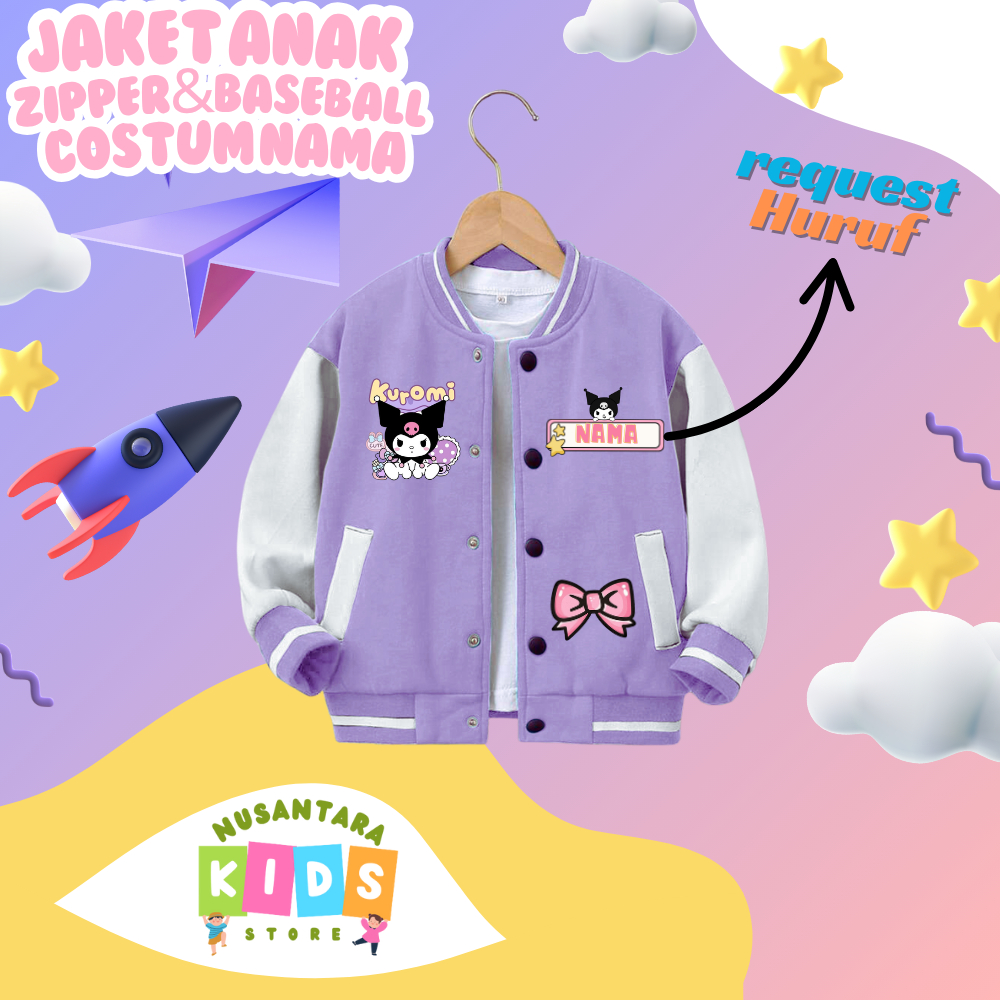 (NEW!!) JAKET BASEBALL DAN ZIPPER BISA REQUEST NAMA ANAK PEREMPUAN KUROMI DARI USIA 2-12 TAHUN