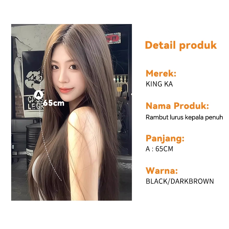 King Ka Full Wig Korean Long Straight Tanpa Poni Rambut Palsu Wanita Lurus Natural Wig Wanita 65 cm