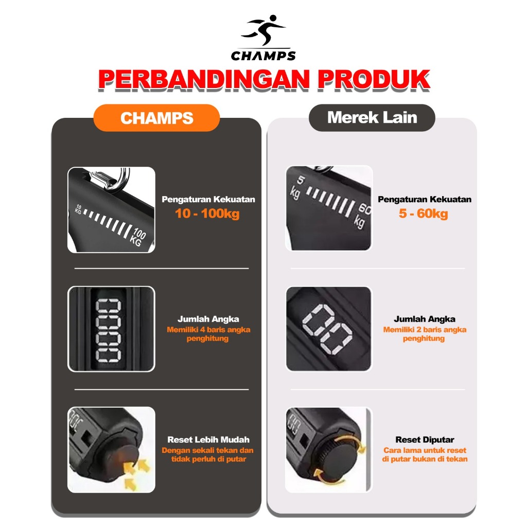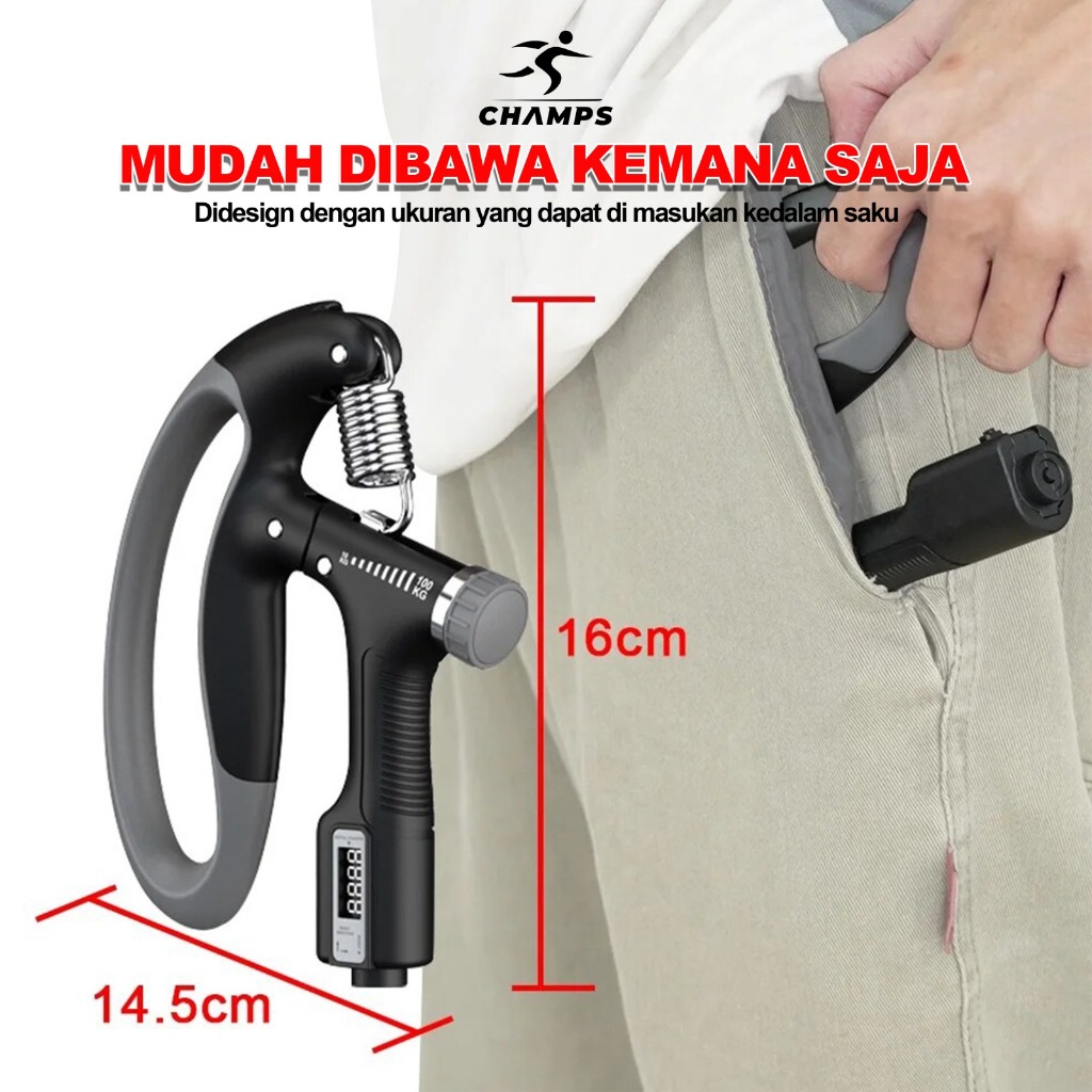 CHAMPS Handgrip Adjustable 10–100KG Digital Counter | Hand Grip Alat Latihan Otot Tangan & Jari | Fitness Portable CH-HG4