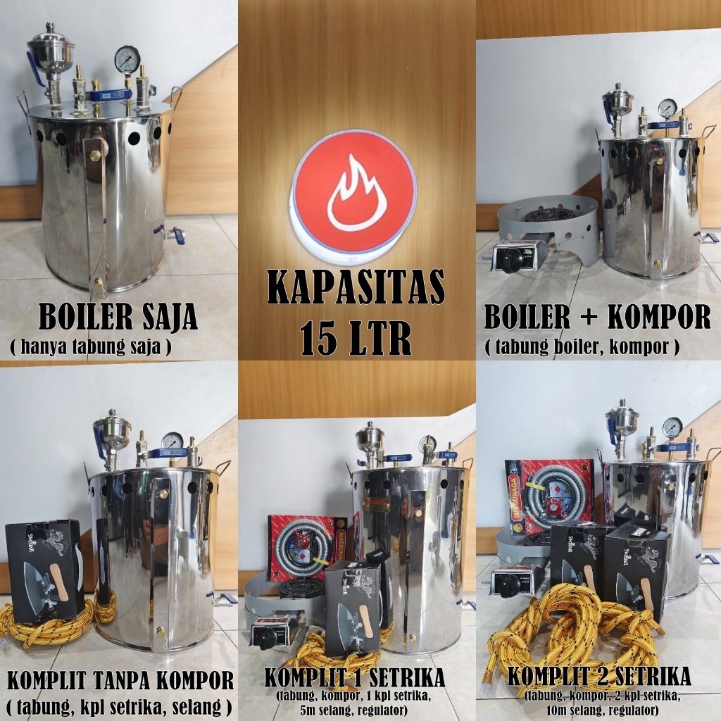 BOILER SAJA, BOILER + KOMPOR, KOMPLIT 1 SETRIKA, KOMPLIT 2 SETRIKA, KOMPLIT TANPA KOMPOR