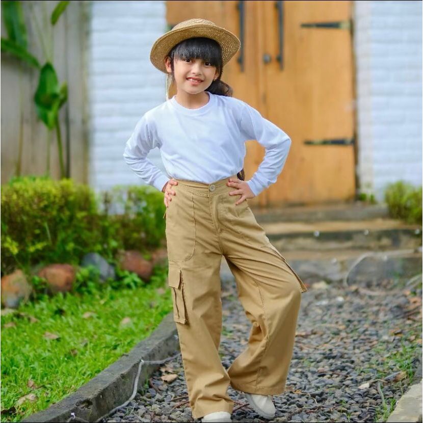Cargo Anak Perempuan Umur 8-16 Tahun Kids Fashion Highwaist Loose Kargo Wanita Nyaman Adem Kekinian