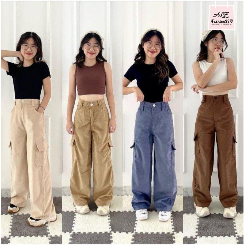 CELANA CARGO REMAJA PINGGANG HIGHWAIST PEREMPUAN 8 - 16 TAHUN