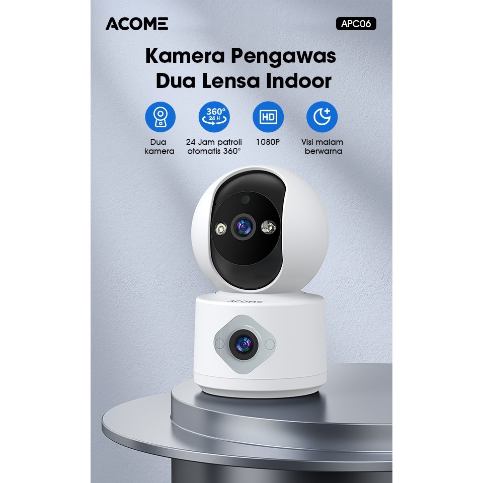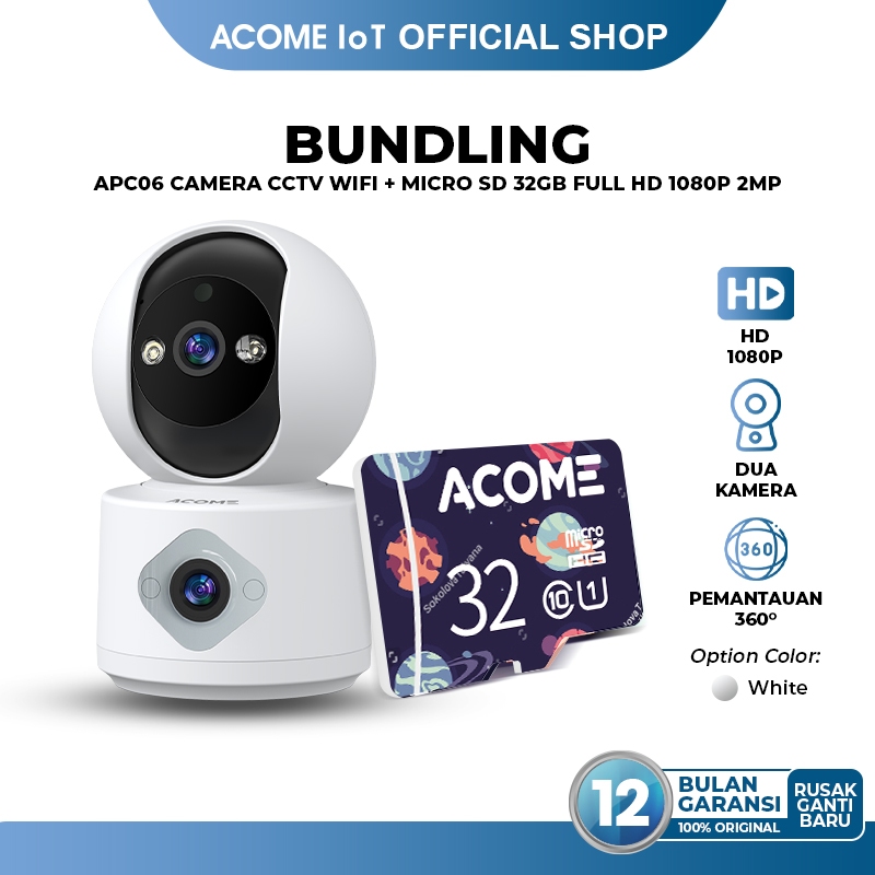 ACOME IoT Camera CCTV APC06 dengan Micro SD Card 32GB CCTV WiFi Indoor 2 Lensa Full HD 1080P/2MP