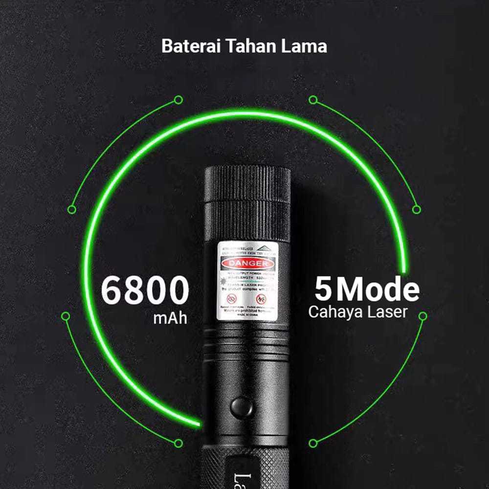 Green Laser Pointer 303 5000MW Warna Hijau Jarak Jauh Baterai Cas Free Charger dan Kunci Pengaman original