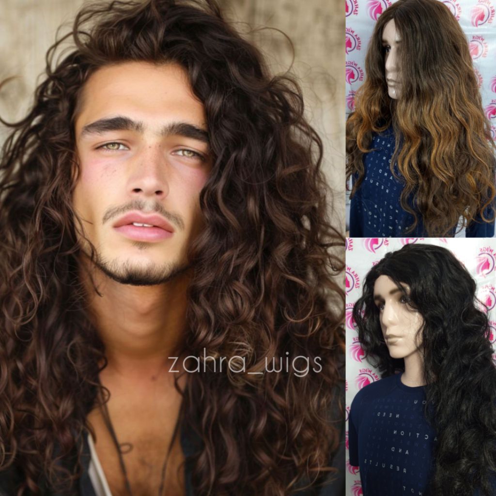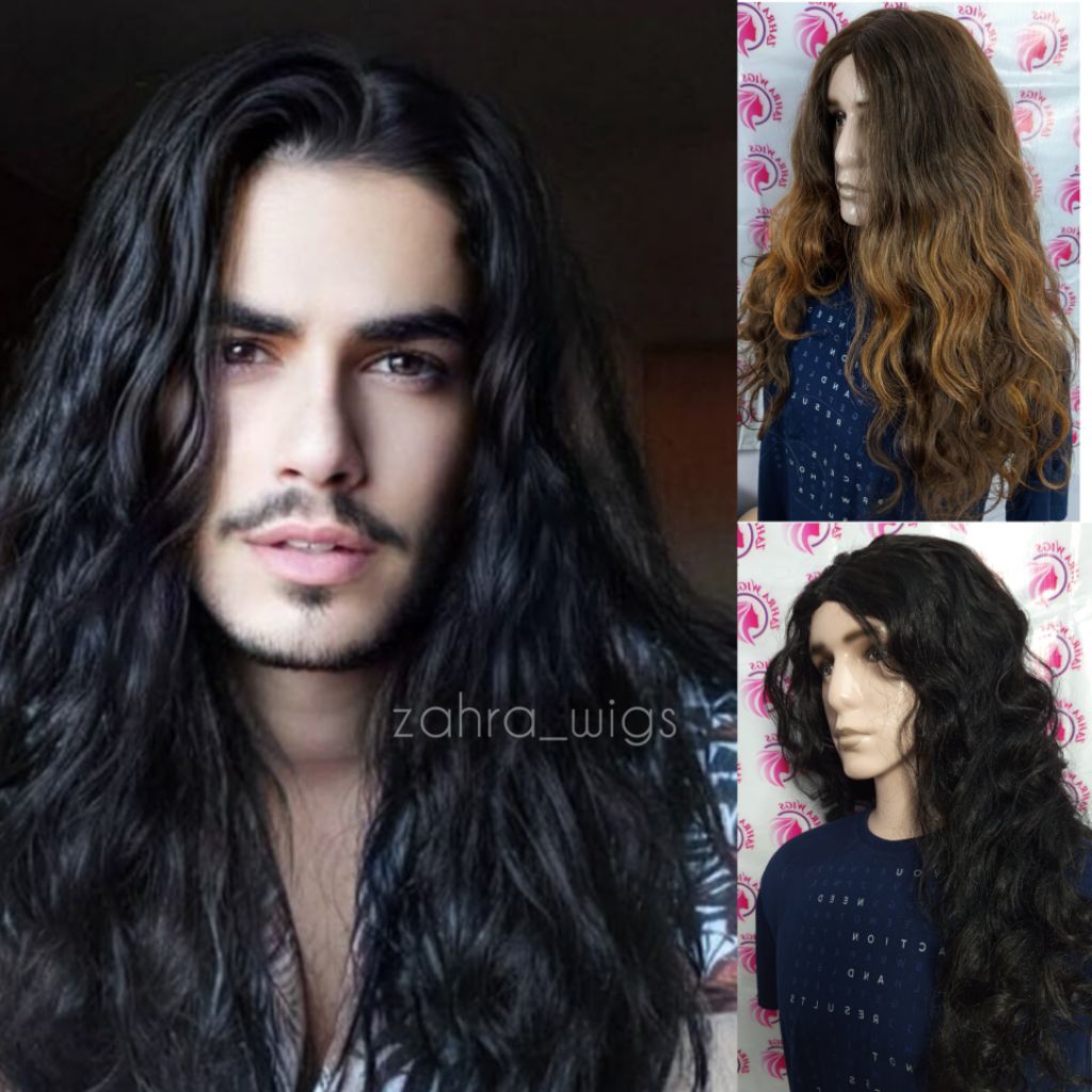 WIG PRIA RAMBUT BADEL PANJANG KERITING BEROMBAK GAYA PRIA EROPA GAGAH
