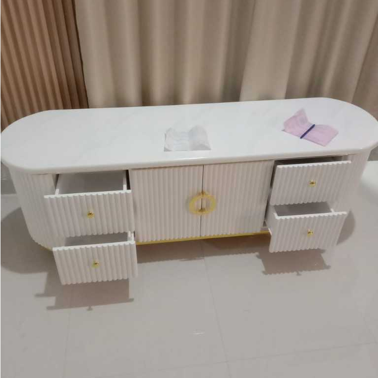 MEJA TV MINIMALIS MODERN BUFET TV OVAL CREDENZA TINGGI60CM / BUFET SERBAGUNA / MEJA TV / RAK TV LEMARI KAYU RUANG TAMU