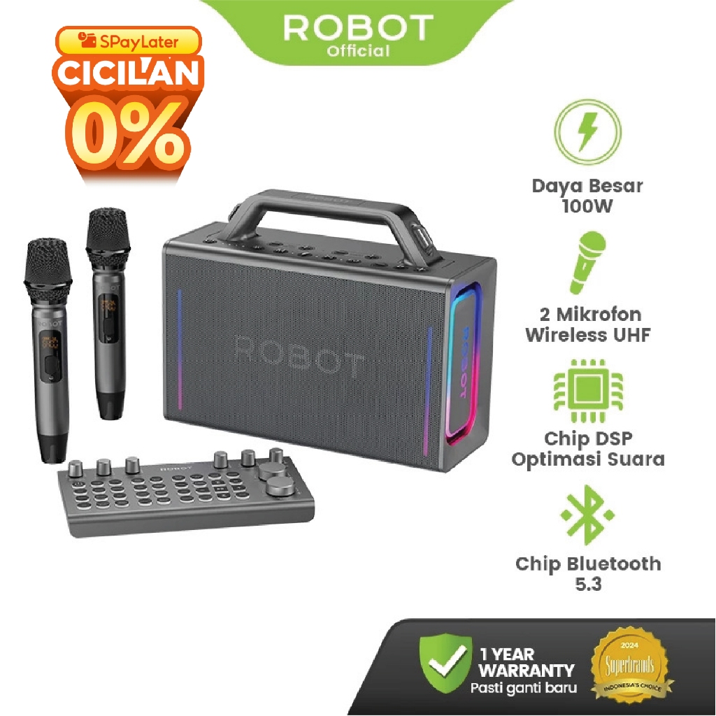 ROBOT Speaker Karaoke Outdoor RGB IPX6 100W Bluetooth 5.3 Chip DSP Speaker Daya Besar RB90 Original - Garansi 1 Tahun