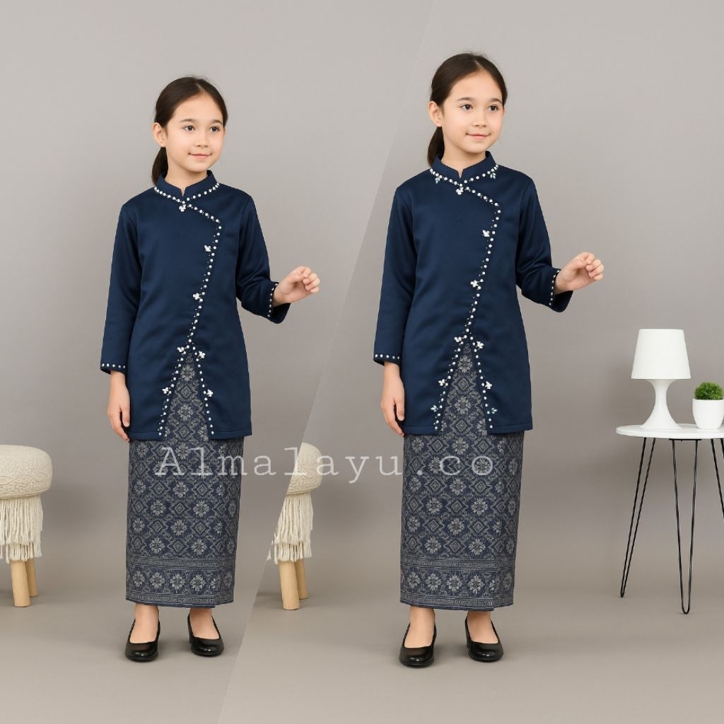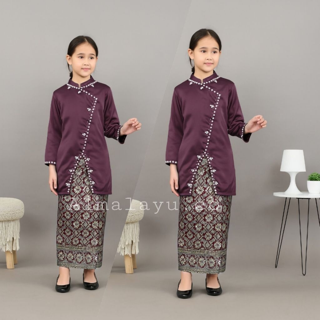 One set Hana anak baju kurung setelan kondangan anak atasan satin dan rok songket blouse payet
