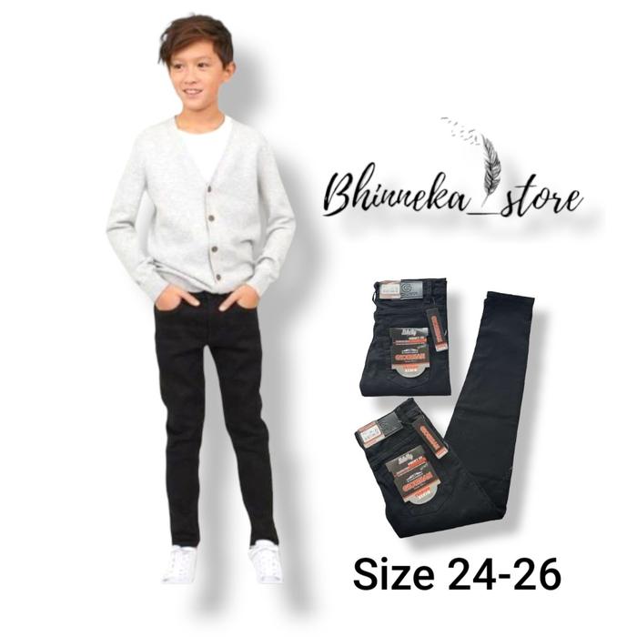 Celana Jeans Anak Umur 1-15 Tahun / Celana Anak Tanggung / Celana Jeans Anak Cowok Laki-Laki Kids - Hitam, Size 24 9-10