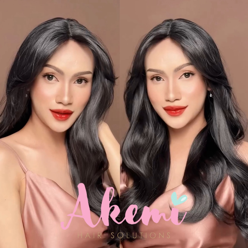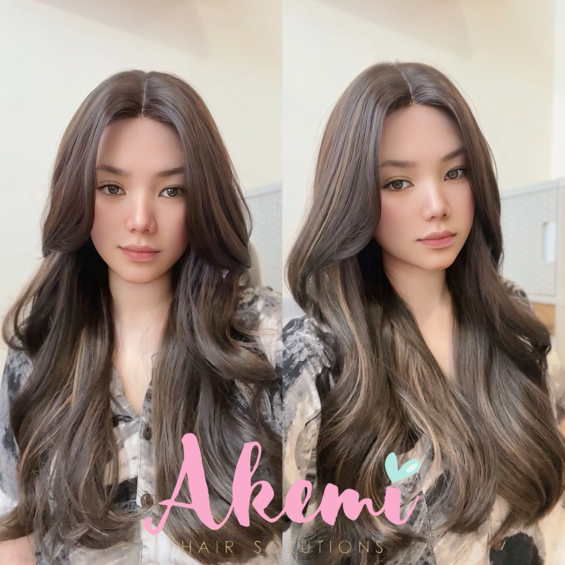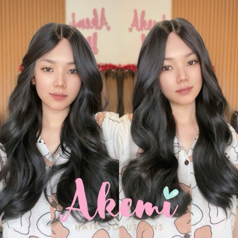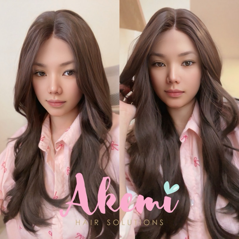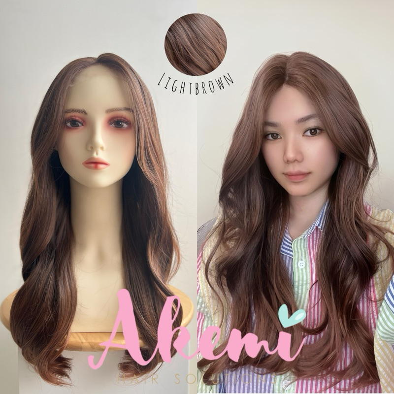 LACE FRONT WIG AKEMI - CURTAIN BANGS WAVY 60cm [ Rambut Palsu Wanita Panjang Bergelombang Wig Natural Wave Marcellashair