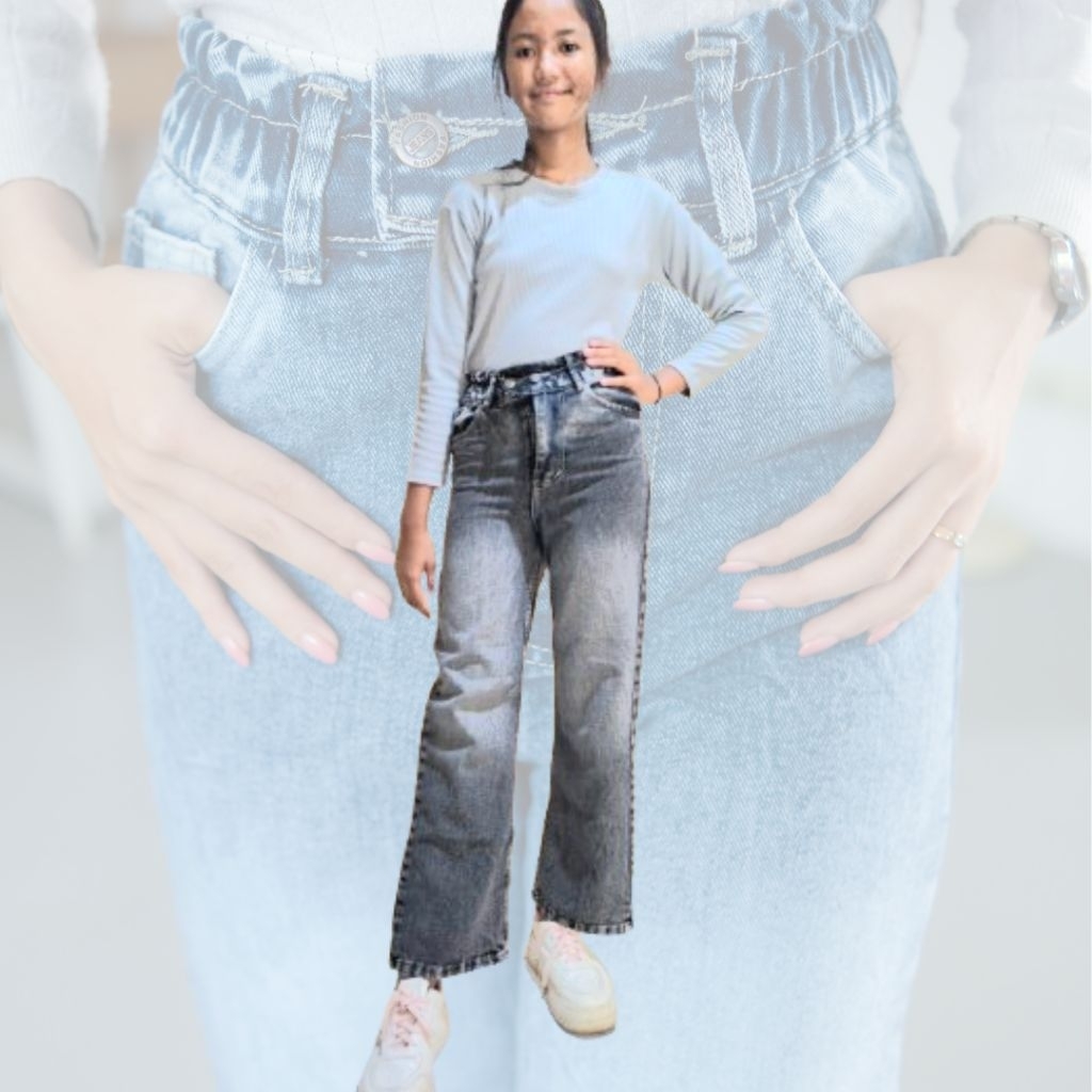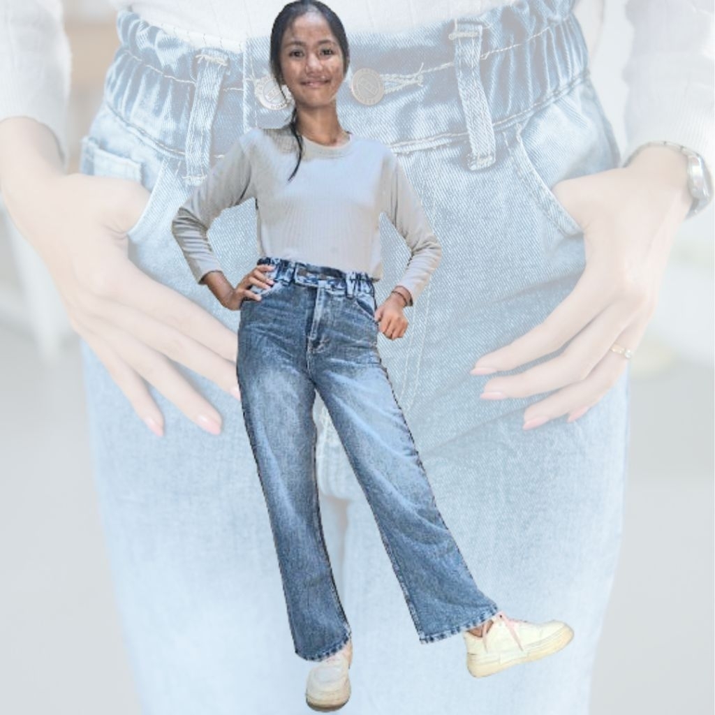 CELANA JEANS WANITA ANAK REMAJA UMUR 11-19 th,KULOT HIGHWAIST PINGGANG KARET,KANCING 2