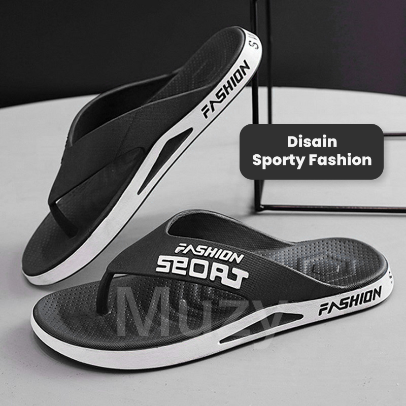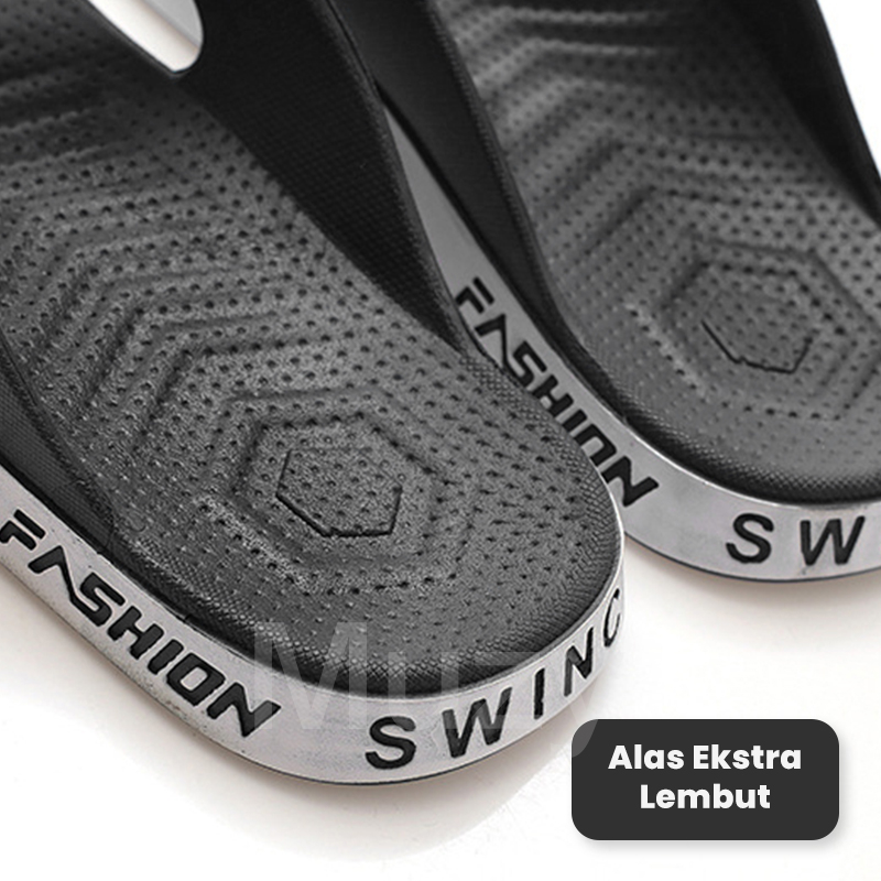 Sandal Rumah Muzy Karet Jepit Kasual HSN167 Warna Hitam Abu
