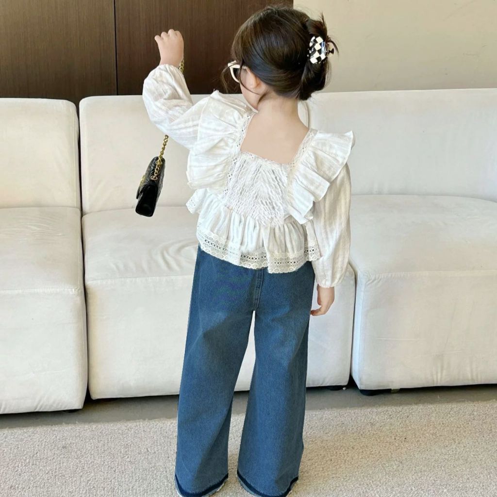 CHUBBI 6 - Setelan Set Anak Baju Blouse Katun Brukat Premium Celana Jeans Panjang Fashion Korea