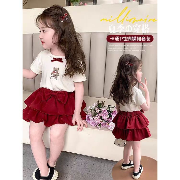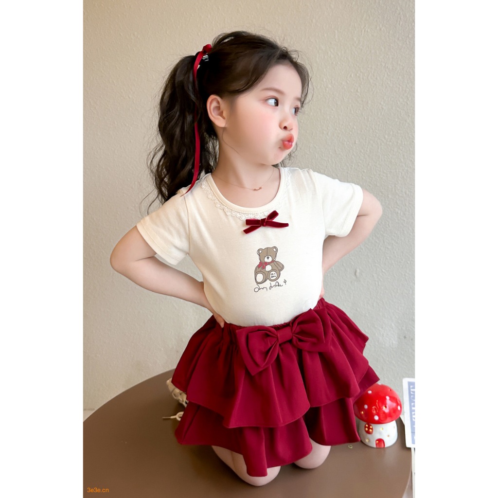 Baju Setelan Kaos & Rok Layer Katun Nyaman untuk Anak Perempuan usia 1-5thuan