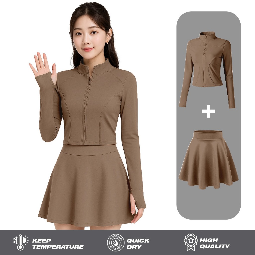 RHID - Jaket Dan Rok Olahraga Wanita Lari Senam Yoga Gym Anti UV