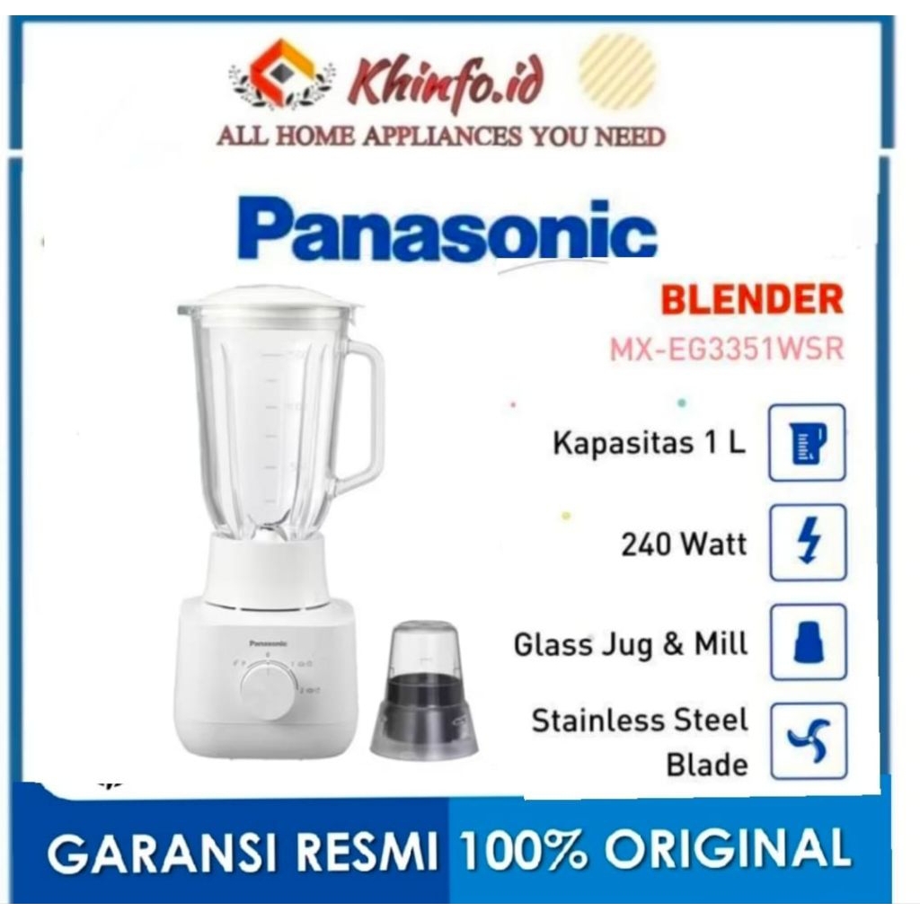 Blender panasonic kaca MX-EG3351KSR (HITAM)/WSR (PUTIH) Panasonic blender kapasitas 1 Liter warna hitam