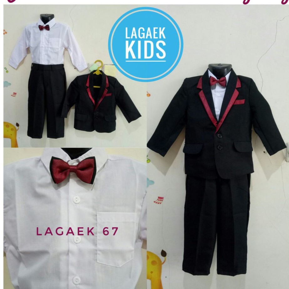 Setelan Jas Anak Laki Laki Usia 1 - 12 Tahun HITAM - Setelan Pesta Anak Cowok 4in1 Jas List Merah Tuxedo Lengkap Anak -