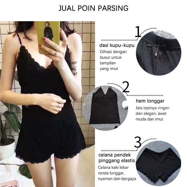 UNINICE [Pengiriman Rahasia] Setelan Piyama Seksi dengan Renda, Dua Potong Tanktop Katun
