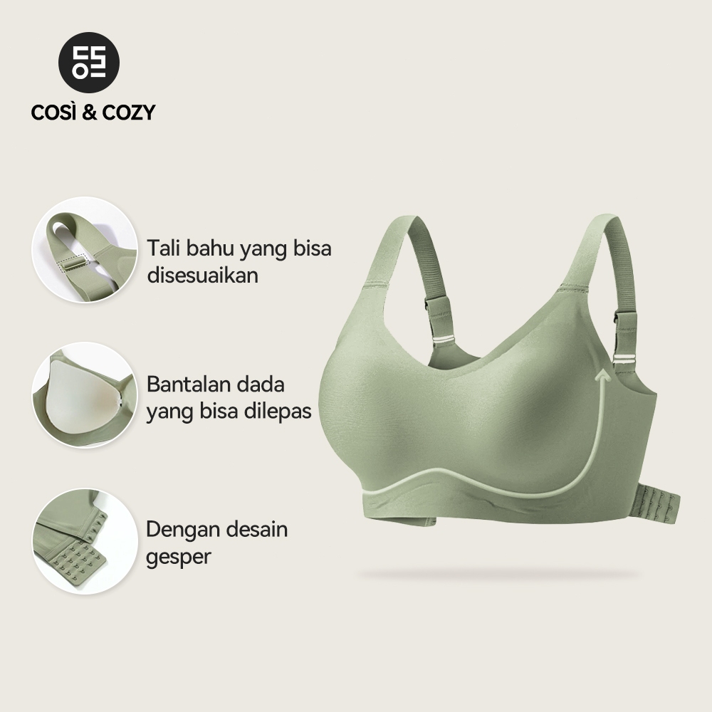 COSI Paket Sport Bra 2 PCS Tali Lebar Adjustable Push Up Bra Tanpa Kawat Bra Pad Lepas Pasang