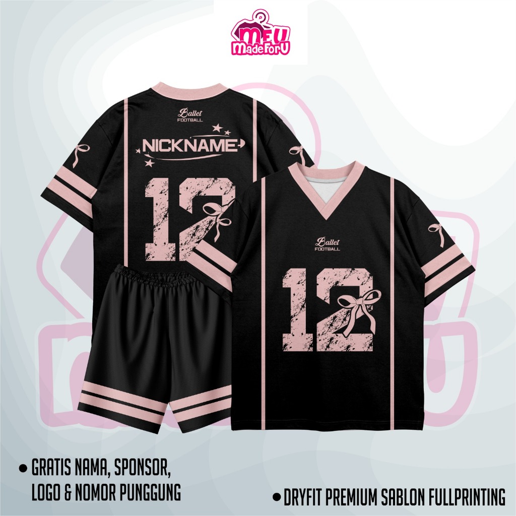 Jersey Baju Ballet Football Full Black Custom Futsal, Zumba, Badminton, Tennis, Volly GRATIS NAMA DAN NOMOR PUNGGUNG