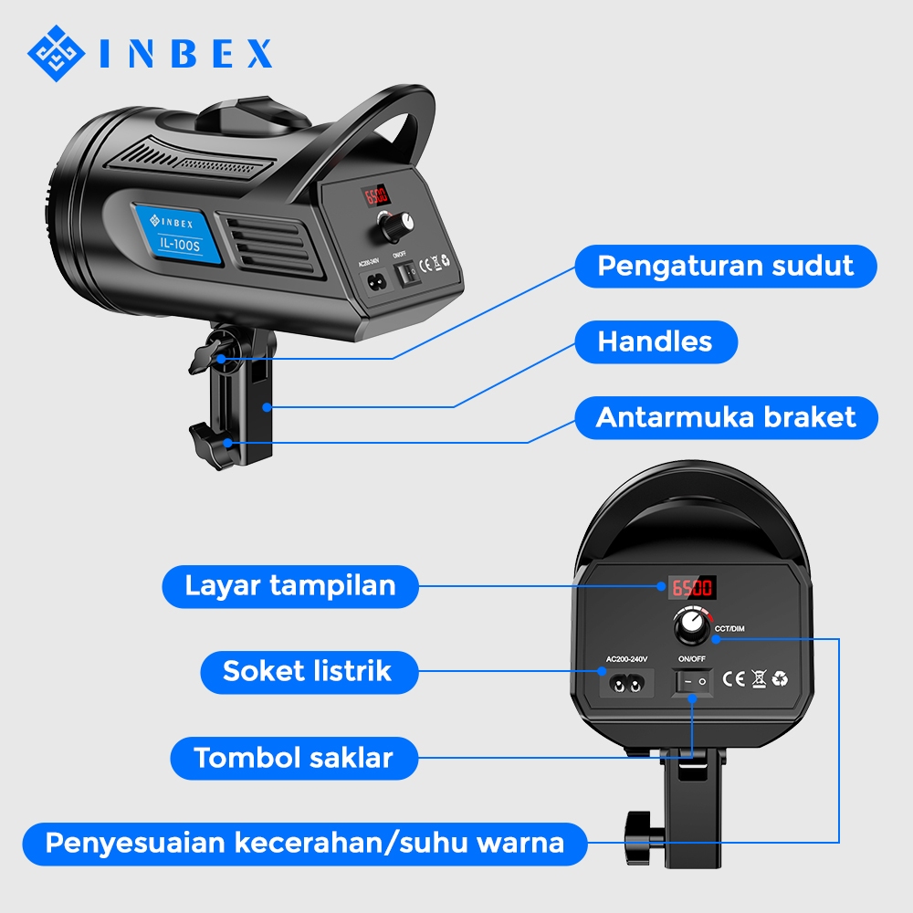 INBEX IL-100S Lampu 100W Profesion light Studio dengan Pencahayaan Softbox Cahaya live konten Daylight CRI 90 Untuk Stud