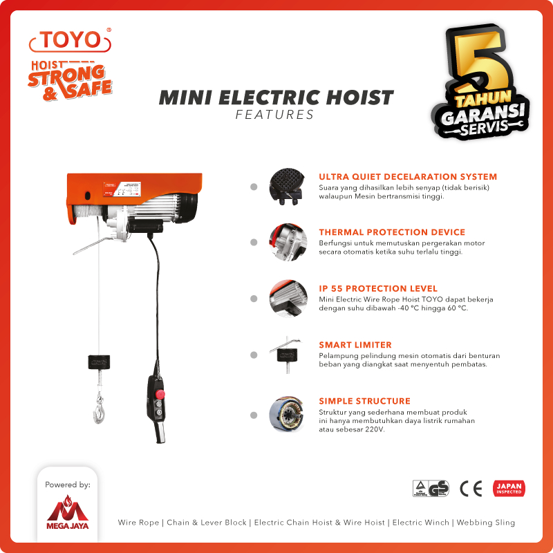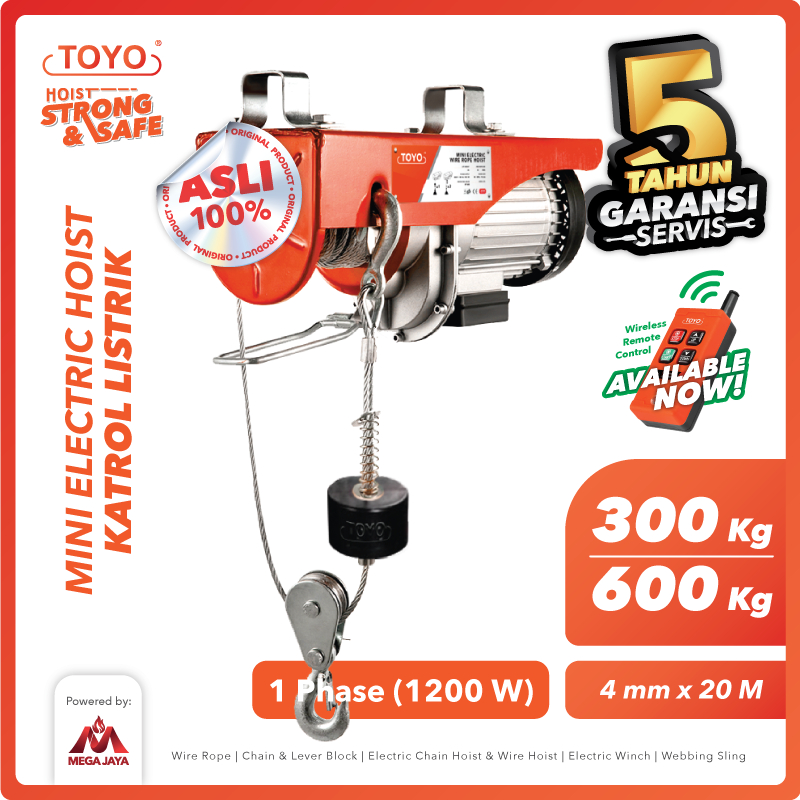 TOYO Mini Electric Hoist / Katrol Listrik 300/600 Kg x 20 Meter