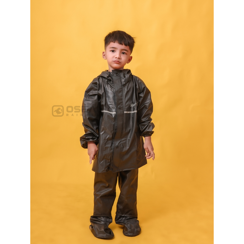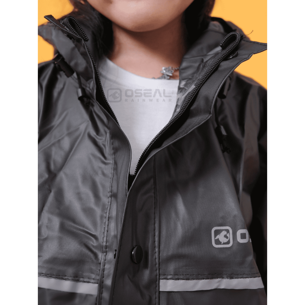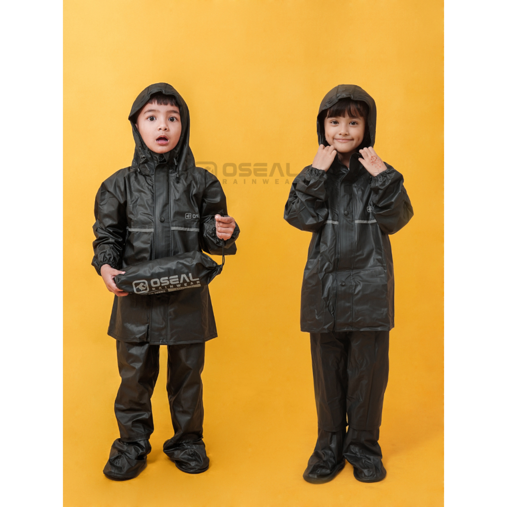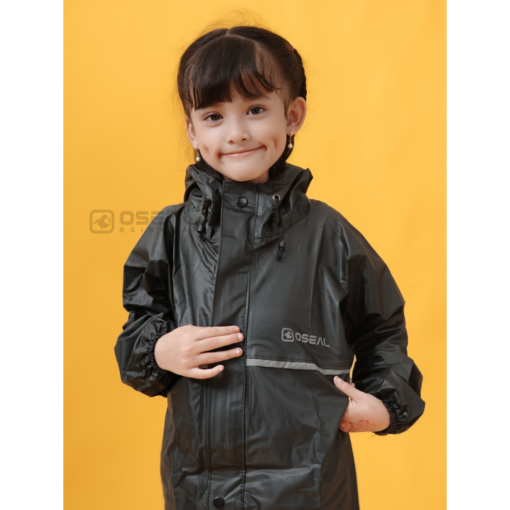 OSEAL Jas Hujan Anak Laki Laki Perempuan Mantel Hujan Anak 4-12 Tahun Full Seal Shinekid Hitam