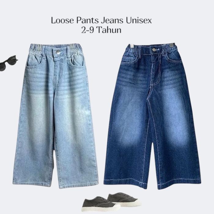 Ervis Celana Jeans Skena Loose Pants - Celana Baggy Jeans Anak Laki-Laki Dan Perempuan 2-9 Tahun Unisex Fashion Tanpa Re
